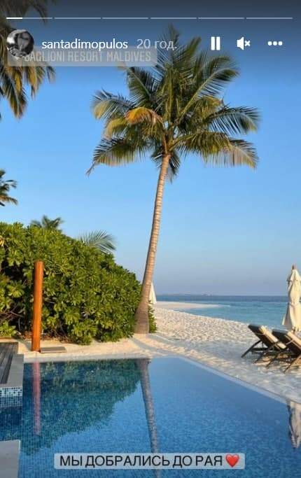 Нещодавно зірка знову вирушила у відпустку в теплі краї. На цей раз Санта Дімопулос відправилась на Мальдіви. В Instagram-stories вона повідомила, що вже дісталася до готелю, в якому проведе відпустку.