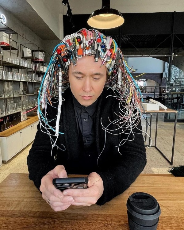 Про свій новий трек Сергій Бабкін розповів на сторінці в Instagram. Також артист запостив фото, на якому продемонстрував зачіску з великої кількості дротів. На світлині чоловік сидить за столом, тримаючи в руці телефон. Він одягнений в сорочку чорного кольору та піджак.