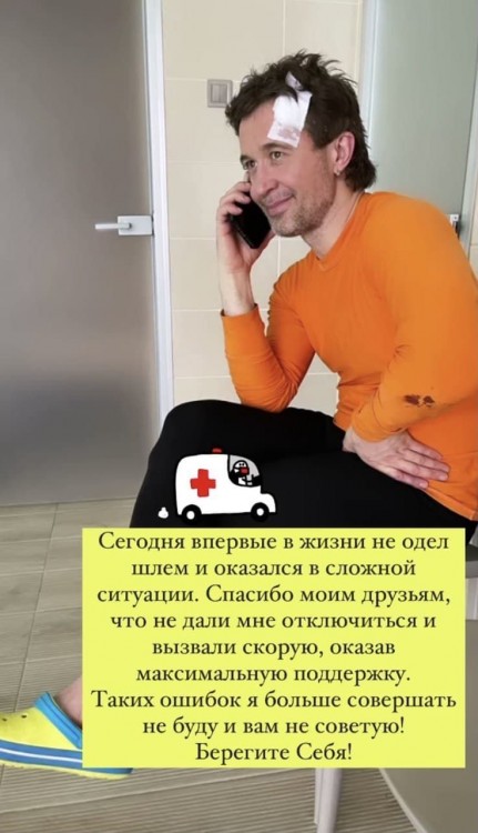 Під час катання на велосипеді Сергій Бабкін сильно травмувався. Не одягнувши захисний шолом, чоловік гепнувся з велосипеда. Він перелетів через кермо, розбивши голову та лікті.
