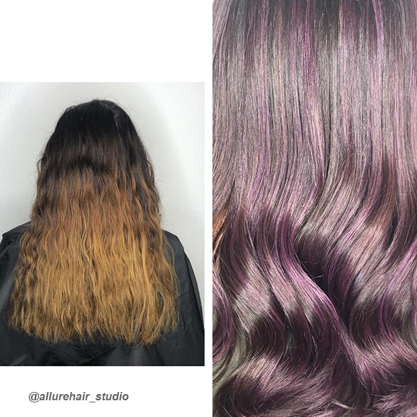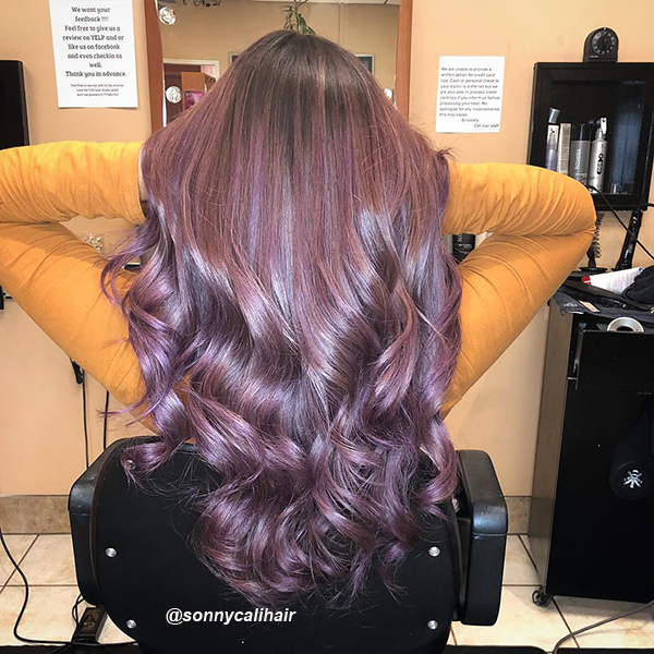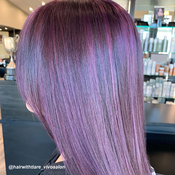 З приходом холодів, палітри актуальних відтінків волосся стають темнішими, але при цьому зовсім необов’язково відмовлятися від кольору. Яскравий (у всіх сенсах цього слова) приклад – шоколадно-бузкове забарвлення.