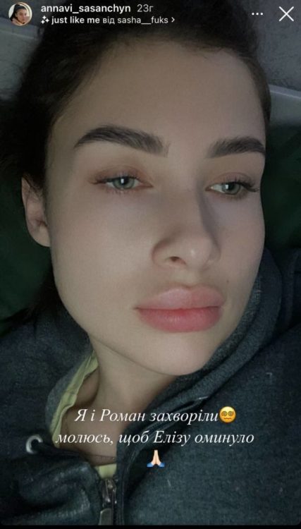 Вона вийшла на зв’язок та поскаржилась на погане самопочуття. “Я і Роман захворіли. Молюсь, щоб Елізу оминуло. Ну тепер те, чого боялись. Еліза заснула і через годину прокинулася з плачем і температурою. Закутана, бо тряслася вся”, – заявила Іванна Сасанчин.