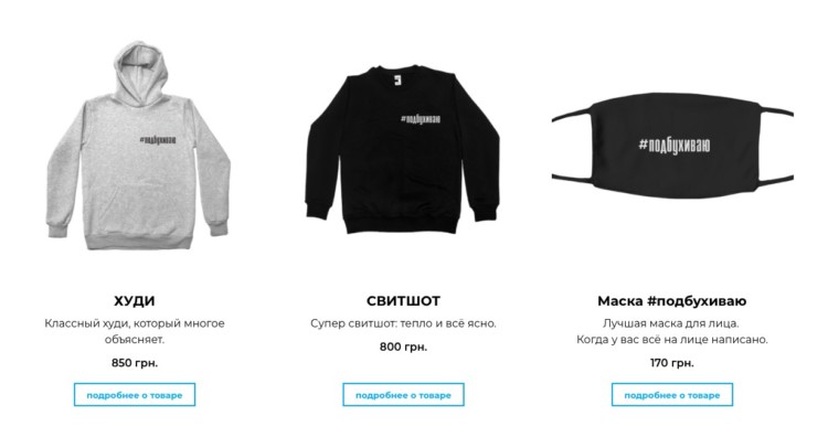 Зазначимо, захисна маска – не перша річ в онлайн-магазині Володимира Остапчука. У продажу є худі, світшоти, сумки, чохли та інше.