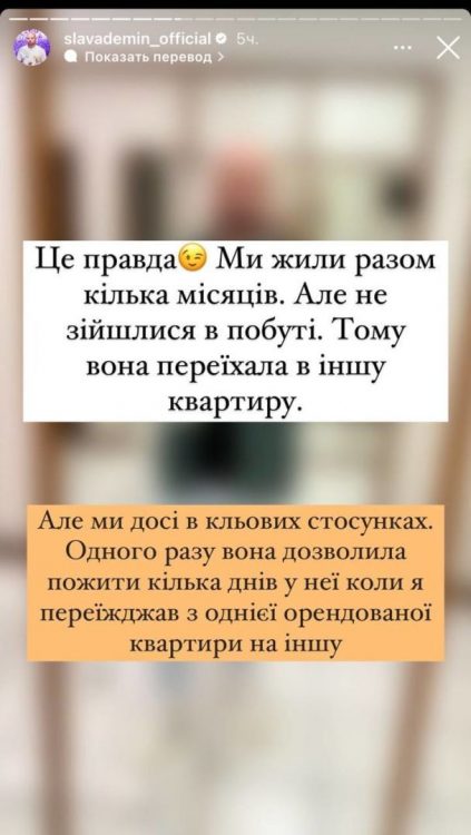 За словами чоловіка, телеведуча навіть дозволяла йому пожити у неї, поки той переїжджав до іншої квартири. Фоловери відразу засипали Славу Дьоміна запитаннями щодо особистого життя. Однак, телеведучий натякнув, що наразі його серце вільне.