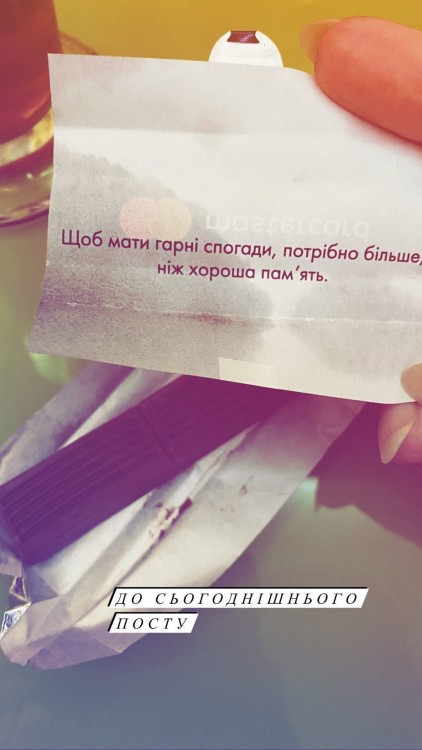 Виконавиця чудово провела час з колишнім чоловіком. Slavia та Дзідзьо пили каву з шоколадкою, як раптом в середині обгортки жінка побачила надпис “Щоб мати гарні спогади, потрібно більше, ніж хороша пам’ять”.