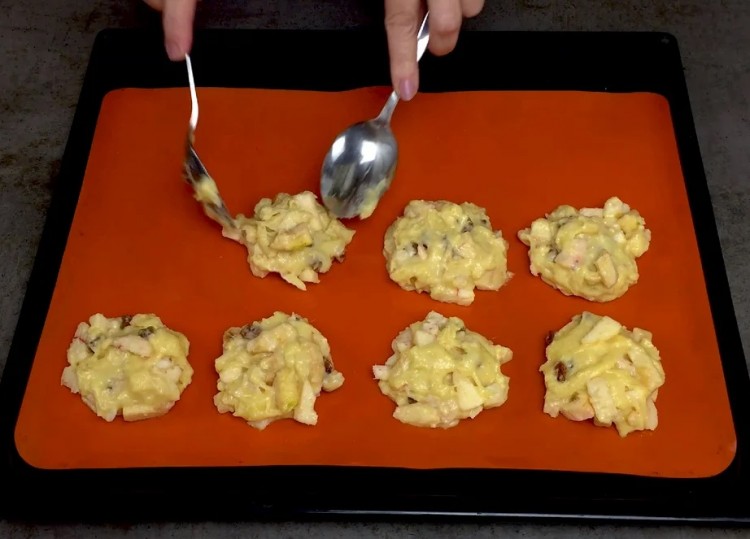 Викладаємо тісто по одній столовій ложці на деко, попередньо застелене пергаментом або на силіконовий килимок.