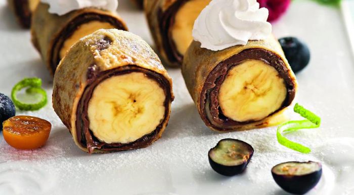 Такий десерт можна подавати до святкового столу. Роли з бананом та карамеллю мають апетитний вигляд та дуже смачні.