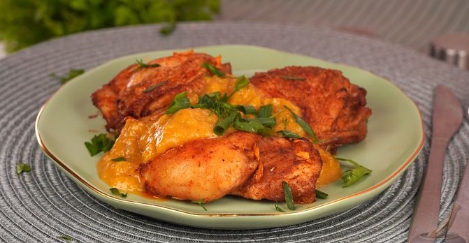 Така курка має нереально апетитний вигляд та ніжний смак. Вона готується дуже просто й швидко. Запечена курка з гарбузовим соусом сподобається всім рідним та гостям.