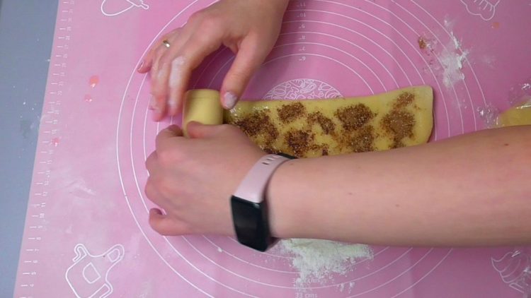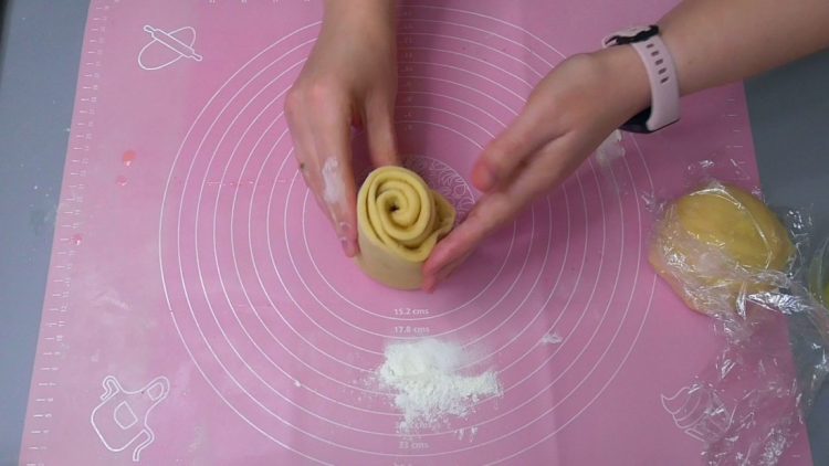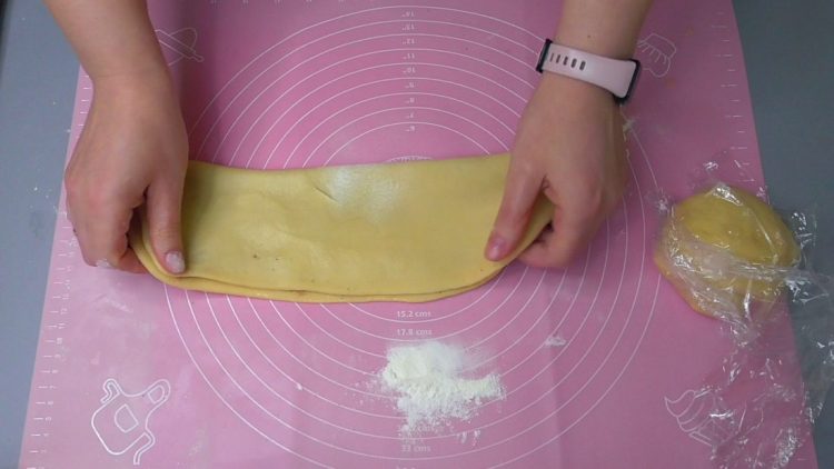 Тепер закручуємо тісто у валик, і кладемо його у форму.