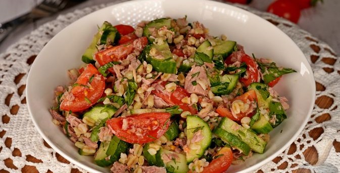 Такий салат дуже ситний та простий у приготуванні. Він складається з небагатьох інгредієнтів. Салат з тунцем, булгуром та овочами нереально смачний та апетитний. Обов’язково приготуйте його за цим рецептом.
