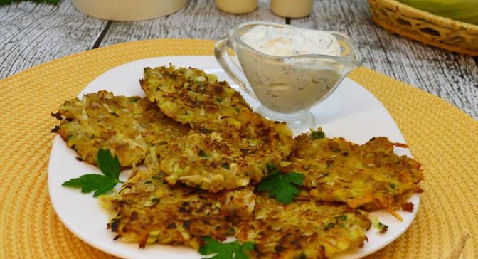 Рецепт таких дерунів дуже простий та бюджетний. Вони мають апетитний вигляд та чудово смакують в гарячому вигляді. До столу такі деруни подають з йогуртовим соусом.
