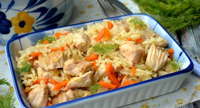 У приготуванні рису з індичкою та овочами немає нічого складного. Страва виходить дуже смачною та ситною. Вона готується в духовці, тому має апетитний вигляд й чудовий аромат.