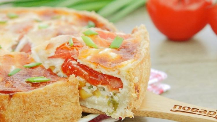 Пиріг з кукурудзою та помідорами має апетитну скоринку та чудовий аромат. Він простий у приготуванні та нереально смачний. До столу такий пиріг можна подавати в гарячому або холодному вигляді.