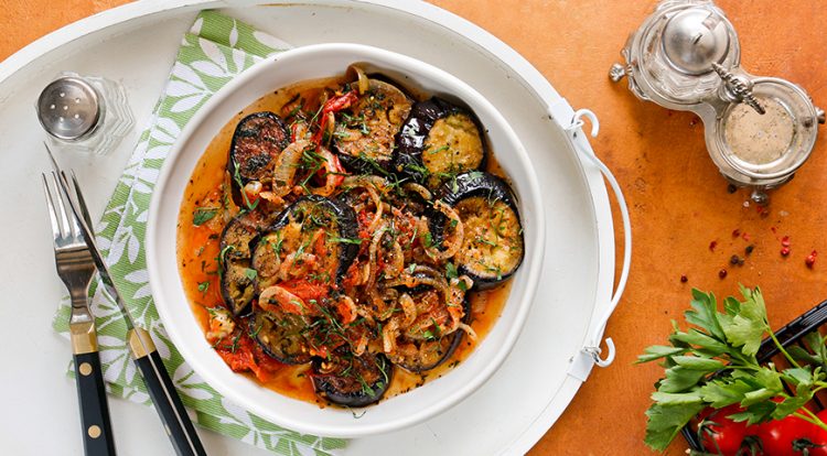 Страва готується за лічені хвилини, а виходить надзвичайно смачною та оригінальною. Тушковані баклажани з помідорами та часником мають апетитний вигляд і просто фантастичний аромат.