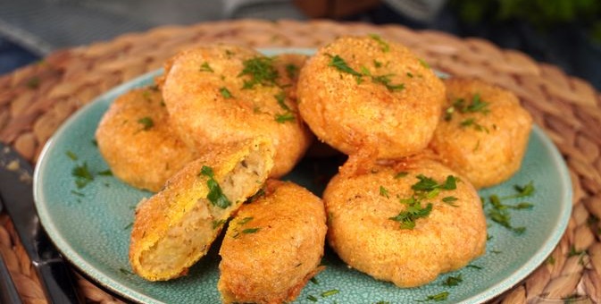 З картопляної суміші робимо котлети. Спочатку занурюємо у яєчну масу, а потім обвалюємо в кукурудзяній крупі. Котлети викладаємо на розігріту сковорідку та смажимо до золотистої скоринки. Смачного!