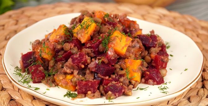 Якщо Ви ніколи не куштували цей салат, то обов’язково його приготуйте. Страва має апетитний вигляд. Салат з буряка з гарбузом та сочевицею виходить настільки ситний, що зникає з тарілки за декілька хвилин.