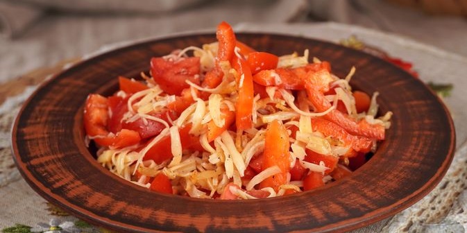 Салат зі смаженою селерою, помідорами, перцем та сиром