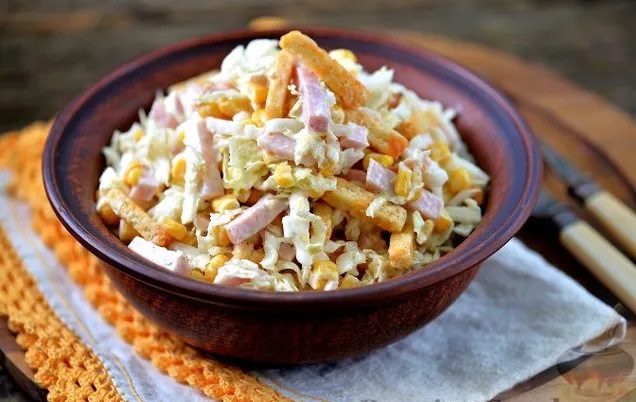 Салати з консервованою кукурудзою часто подають до святкового столу. Вони дуже прості у приготуванні та апетитні на вигляд. В салатах чудове поєднання інгредієнтів. Такі страви нереально ситні та мають відмінний смак.