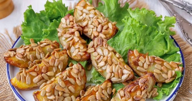 Таку смачну картоплю Ви ще точно не куштували. Вона швидка у приготуванні та дуже апетитна. Запечена картопля з соняшниковим насінням точно Вам сподобається. Вона ароматна та ситна.