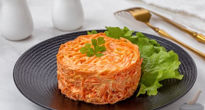 Салат зі свіжої моркви з плавленим сиром та часником