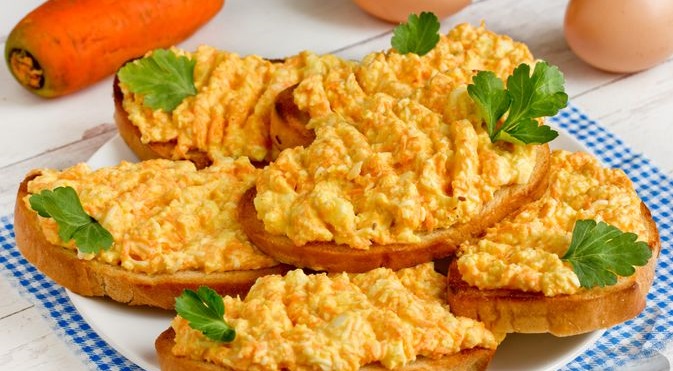 Грінки з морквою та вареними яйцями