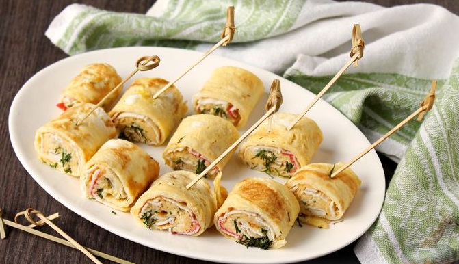 Така закуска точно сподобається Вашим гостям. Яєчні рулетики з крабовими паличками й сиром виходять ніжними на смак. Вони апетитні на вигляд й дуже ситні.