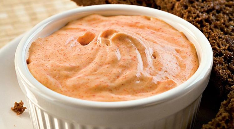 Намазка за цим рецептом виходить просто бездоганною. Вона швидко готується в домашніх умовах та чудово смакує з хлібом. Таку намазку можна подавати з тостами. Вона дуже смачна та апетитна.
