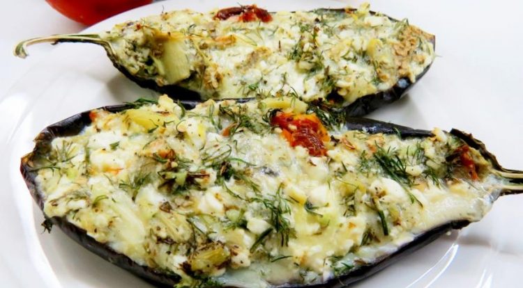З баклажанів дістаємо трохи м’якоті. Фаршируємо їх сирною начинкою та ставимо в духовку на 30 хвилин. Баклажани запікаємо при температурі 180 градусів. Смачного!