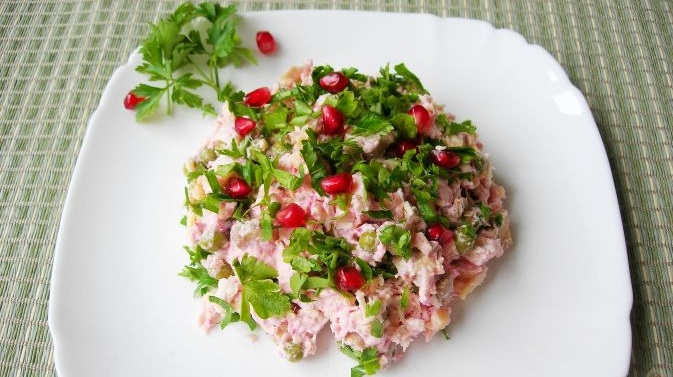 Салат виходить нереально смачним, адже в ньому чудове поєднання інгредієнтів. Він має апетитний вигляд та виходить дуже ситним. Страва чудово підійде до святкового столу.