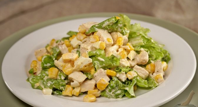 Страва дуже проста у приготуванні. Салат з куркою, кукурудзою та яйцями виходить ніжним, ситним та має апетитний вигляд. Обов’язково приготуйте його для своїх рідних.