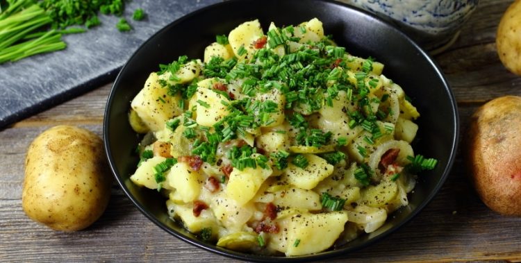 Салат з картоплі виходить дуже ситним. Таку страву можна подавати на обід чи вечерю. Картопляний салат готується дуже швидко та складається з простих інгредієнтів.