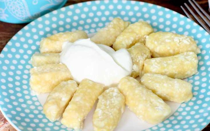 Вареники готуються дуже швидко та просто. Вони виходять ситними, мають апетитний вигляд та чудовий смак. Ліниві вареники подають до столу зі сметаною.