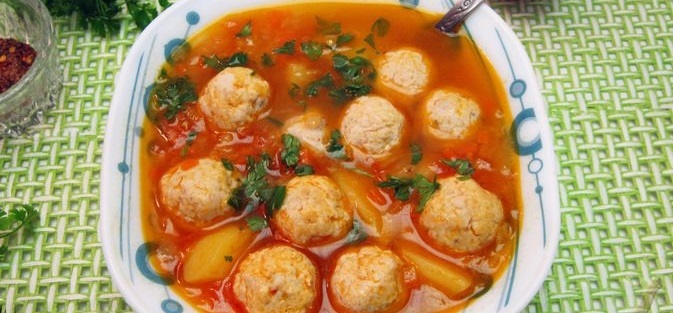 Томатний суп із сочевицею та курячими фрикадельками