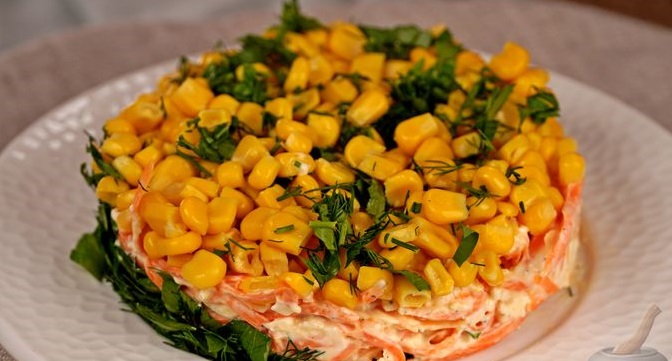 Такий салат надзвичайно апетитний на вигляд та смачний. Він складається з небагатьох інгредієнтів. Салат зі свіжої моркви з плавленим сиром та кукурудзою точно сподобається Вашій родині.