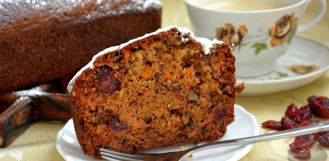 Бананово-морквяний кекс з в’яленою журавлиною та горіхами