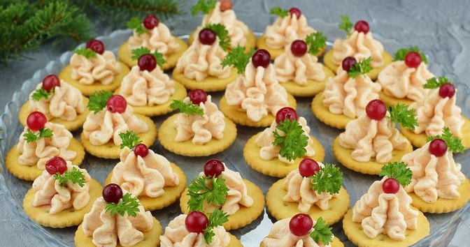 На вигляд така закуска виходить дуже апетитною. Вона проста у приготуванні та ситна. Закуску з крекерів можна подавати до святкового столу.