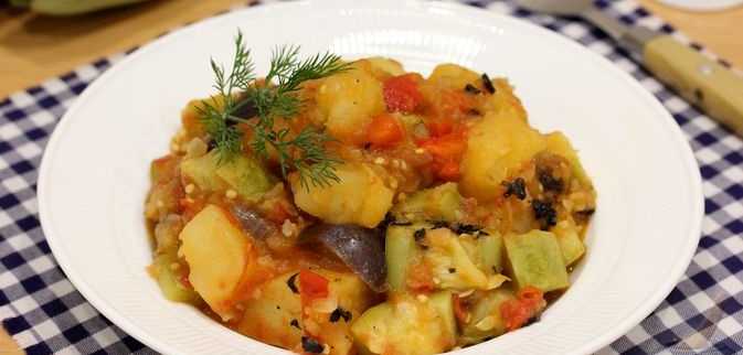 Овочеве рагу з баклажанами, кабачками та картоплею