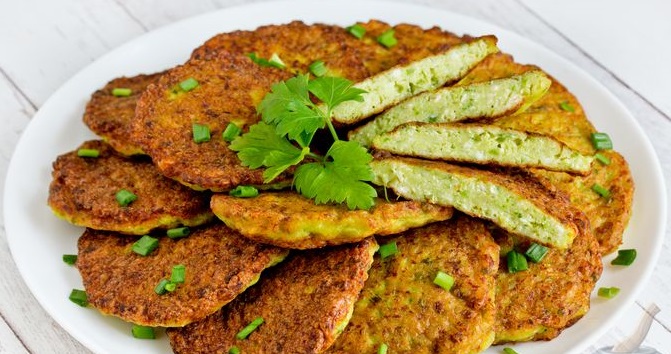 Оладки з курячого філе, кабачків та зеленої цибулі