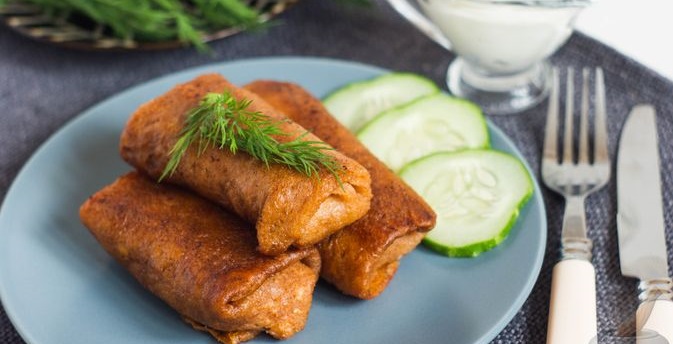 Томатні млинці з начинкою з квасолі