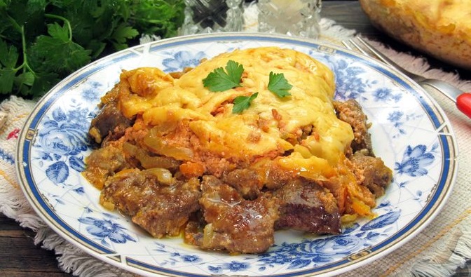 Така печінка виходить надзвичайно смачною та ситною. Для її приготування знадобиться небагато інгредієнтів. Запечена печінка з морквою, цибулею та сиром ніжна на смак та дуже апетитна.