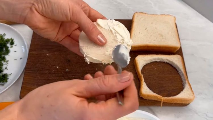 З тостового хліба за допомогою круглої форми для печива вирізаємо кружальця.