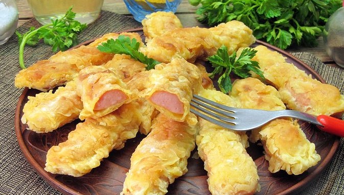 Страва готується дуже просто та швидко. Така закуска ідеально підійде на сніданок. Смажені сосиски в паніровці виходять апетитними. Вони мають хрумку скоринку та ніжний смак. Такі сосиски чудово смакують з будь-яким соусом.