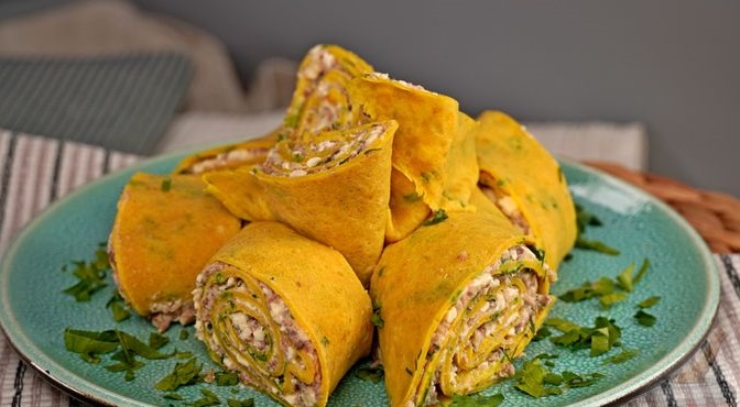 Страва виходить мегасмачною. Для приготування яєчних ролів знадобляться прості інгредієнти. Вони мають ситну начинку та чудовий аромат. Обов’язково подавайте такі роли на сніданок.
