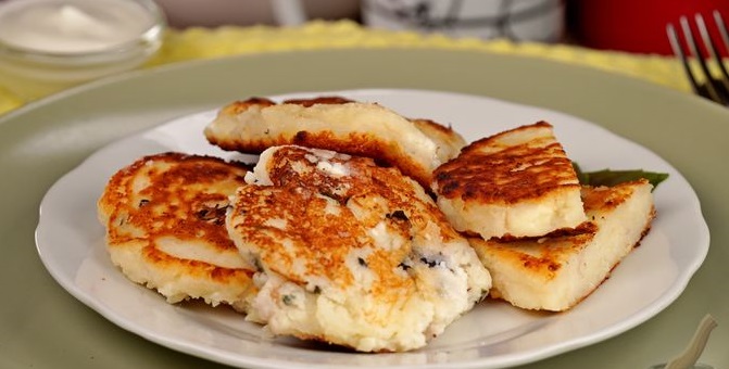 Сирні оладки з рисовим борошном, грушею та базиліком