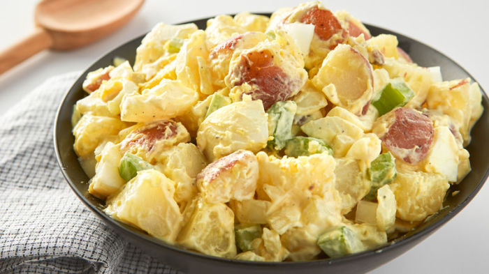 Картопляний салат з беконом легкий у приготуванні. До столу він подається лише в теплому вигляді. Страва виходить ситною та має оригінальний смак. Обов’язково приготуйте її для своєї сім’ї.