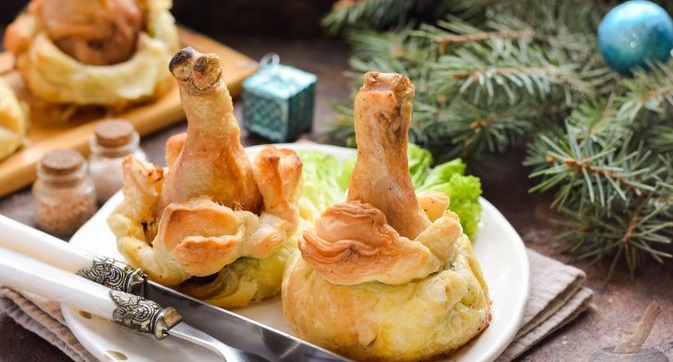 Курячі ніжки з грибами та морквою, в мішечках із листкового тіста
