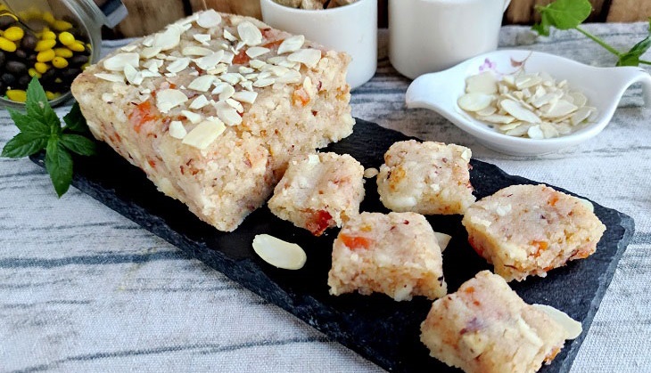 Охолоджений десерт посипаємо мигдальними пластівцями та подаємо до столу. Смачного!