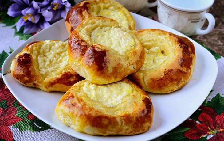 Ватрушки з сиром виходять ніжними, м’якими та дуже пишними. Вони прості у приготуванні та апетитні на вигляд. До столу ватрушки подають з чашкою ароматної кави або чаю.