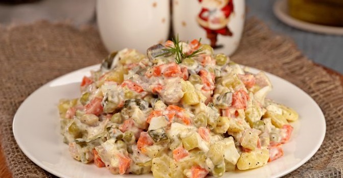 Салат швидкий у приготуванні та дуже ситний. В ньому чудове поєднання інгредієнтів. Салат “Олів’є” з оселедцем точно Вам сподобається. Страва готується дуже швидко та виходить ароматною й апетитною.