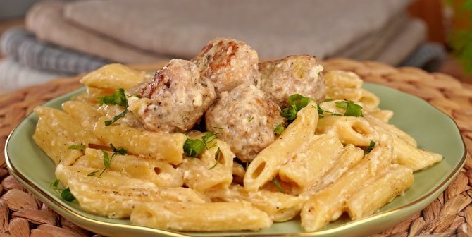 Страва має ніжний молочний смак та дуже апетитний вигляд. Макарони з фрикадельками готуються швидко та просто. Така страва точно Вам сподобається.