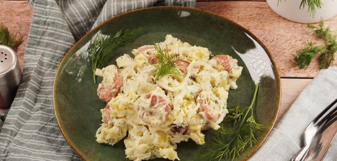 Салат не лише ситний, а й дуже бюджетний. Він швидкий у приготуванні та апетитний. Картопляний салат з сосисками та цибулею точно сподобається всій сім’ї.